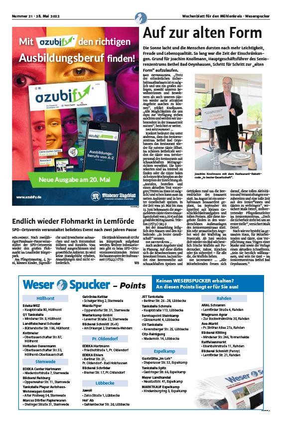 Nummer 21 · 28. Mai 2022 Wochenblatt für den Mühlenkreis · Weserspucker