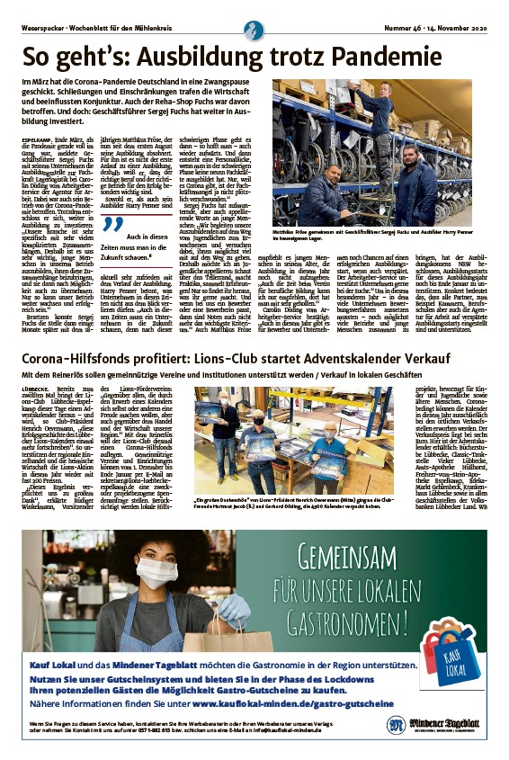 Weserspucker · Wochenblatt für den Mühlenkreis Nummer 46 · 14. November 2020