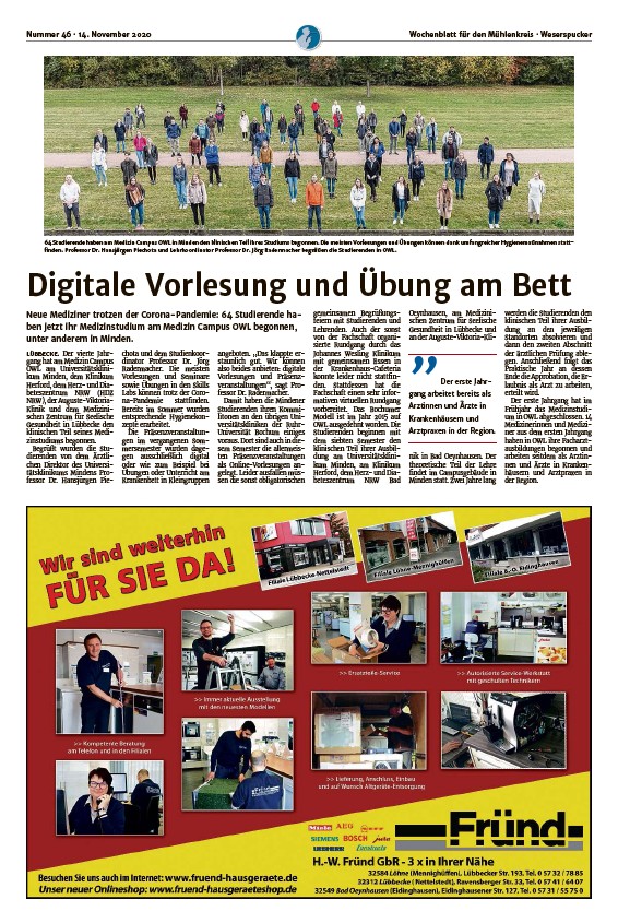 Nummer 46 · 14. November 2020 Wochenblatt für den Mühlenkreis · Weserspucker